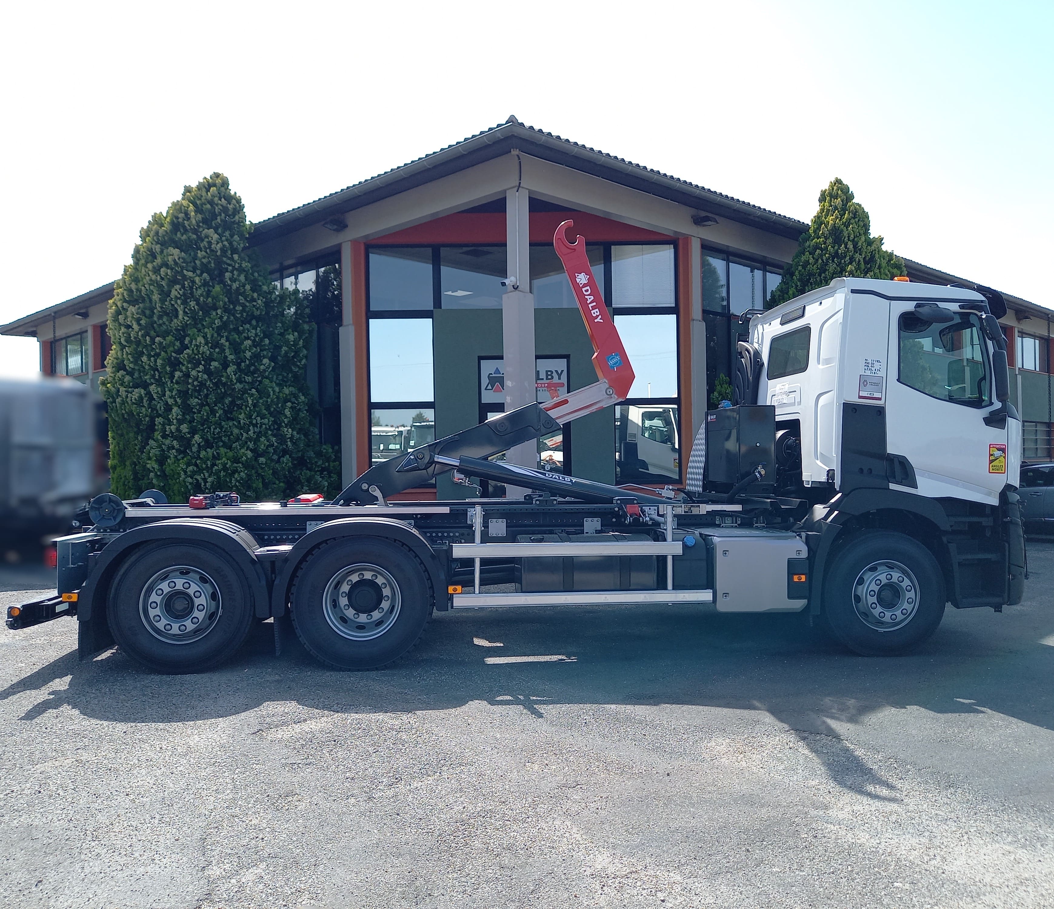 - Le bras coulissant associer à sa BAE AR extensible hydraulique permet de prendre des caissons de différentes longueurs